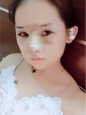 做完手术之后醒来,就看见自己鼻子盖着胶带,有点丑哈,不过这几天怎么丑我都不在乎,我还是可以坚持住的。丑一段时间总比丑一辈子强。我只想要我的鼻子是我想要的效果,真期待时间过快一点拆线看一看。