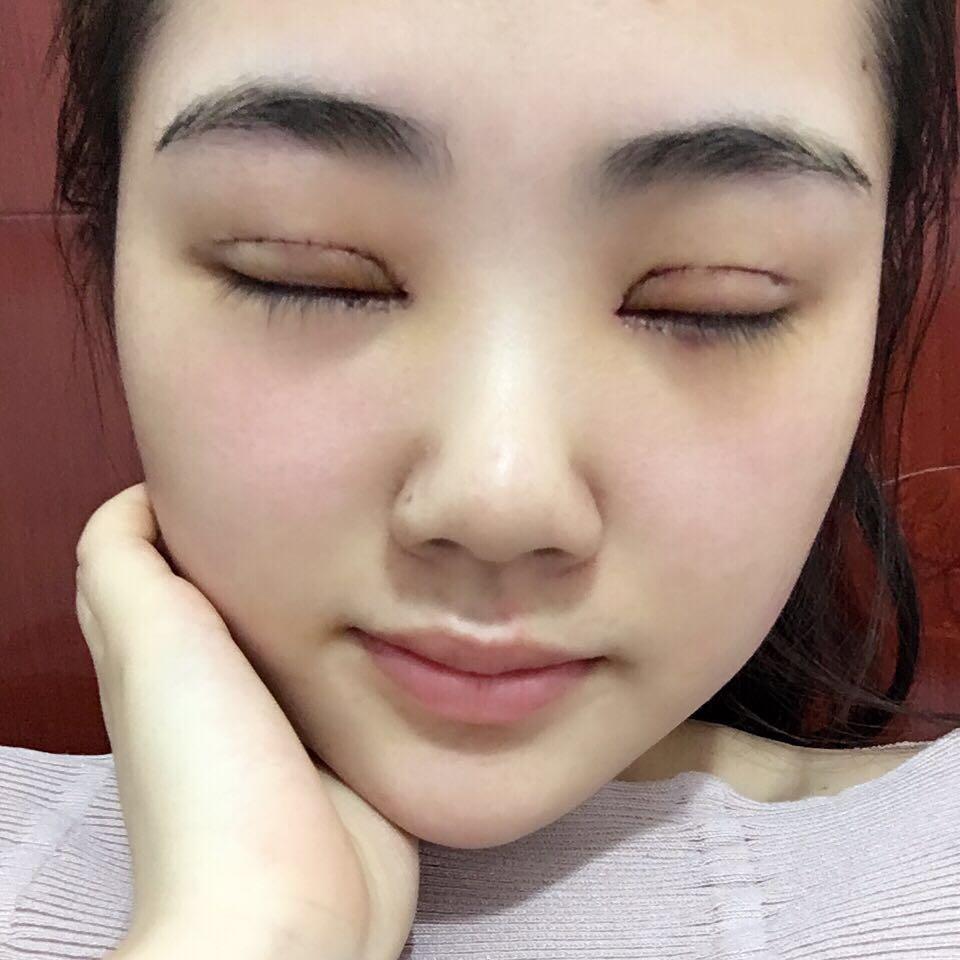 这个有点肿肿,但还在等恢复,我比较害怕疼痛,所以手术我是全麻,因此没有什么感觉。我个人体质还是很不错的,所以恢复的还算可以,尤其是拆完线后恢复超快,每天一个样,眼睛现在也很自然,开心。
